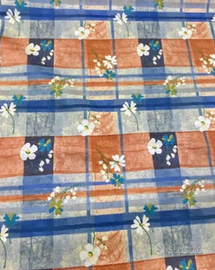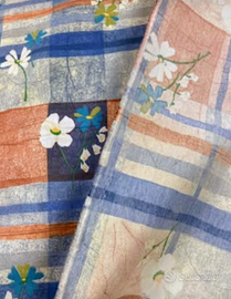 Tessuto misto cotone con motivo floreale. Tessuto stampato di circa 10 mq. Realizzato in Italia