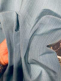 Il tessuto ha una particolare lavorazione, dove l’azzurro si sfuma in azzurro chiaro e più intenso. Nota il particolare.