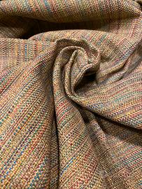 Tessuto Rubelli in cotone, morbido e resistente, adatto a sedute frequenti, quindi rivestimento sedie, puff, poltroncine etc.,. Particolare lavorazione mélange, adatta a qualsiasi sia il tuo stile e colore degli arredi. Lo puoi utilizzare anche per tovaglia copri tavolo o cuscini. Tessuto lavabile a 30 gradi. E’ un tessuto pregiato, in quanto non è un tessuto stampato, ma tramato a telaio, infatti come vedi dalle foto, pure la parte rovescia ha il disegno. Dimensione 130x100 cm. Chi non conoscesse Rubelli, deve sapere che è un tessuto da 129€ al metro. Nuovo. Perfetto