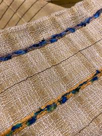 Tessuto Lorenzo Rubelli, con ricamo a rilievo, in pregiato filato di seta, che crea delle righe. Non è uno sta,lato, guarda il retro tessuto. E’ un tessuto in cotone seta e viscosa, dai toni neutri, con effetto screziature sul tessuto di base, che non sono un difetto, ma volute per dare un tono di tessuto dipinto. Adatto per sedute frequenti, quindi sedie ( riesci a fare 6 sedute di sedia ) pouff, poltroncine Puoi usarlo per tappezzeria e rivestimento, ma anche un runner, un arazzo o una tendina per finestra.