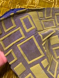 Tessuto Lorenzo Rubelli, double-face, spettacolare e raro nel suo genere. E’ un finissimo velluto morbido e lucente pressato, e dalla parte opposto ha dei disegni geometrici goffrati. Puoi utilizzarlo volendo anche dalla parte goffrata, oppure realizzare in. Double-face face qualsiasi articolo, dal rivestimento a cuscini, etc.. dimensione 130x60 cm E’ un tessuto raro, realizzato a Venezia da Rubelli, credo uno dei più pregiati e stupefacenti mai visti.