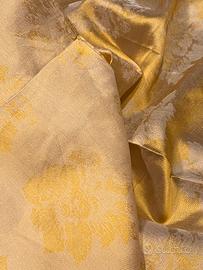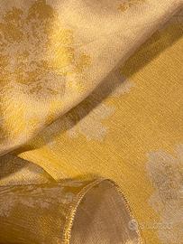 Organza di pura seta double-face face, di Dedar. E’ un tessuto particolare, doppiato, da una parte nei toni ocra con fiori chiari, e dalla parte opposta, ha lo stesso disegno con i colori invertiti ( vedi foto). E’ un tessuto per tenda. Potrai realizzare una tenda per finestra, ma può essere utilizzato anche per un runner, o qualsiasi Cisa desideri, pure un foulard! Dimensione 100x65 cm. E’ un tessuto il cui prezzo era di oltre 100€ al metro.