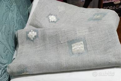 tessuto tenda semi trasparente con figura colore grigio/ con rombo piccoli in tutta la tenda sotto con piombo larghezza 1 50 cm lunghezza 3 metri