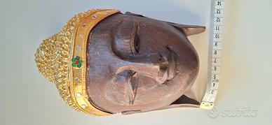 Vendo bellissima testa di Buddha da parete in legno intagliato, altezza 20 cm.