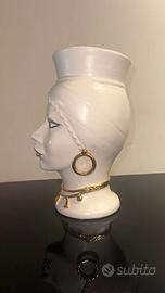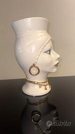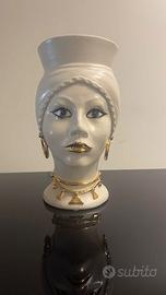 SPLENDIDA TESTA DI MORO IN CERAMICA DI CALTAGIRONE, H42 CM E PESO CIRCA 5 KG FATTA INTERAMENTE A MANO CON DETTAGLI IN ORO.