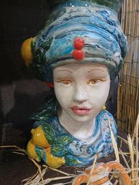 Un tocco di eleganza e tradizione siciliana nella tua casa con questa splendida Testa di Moro *Tinarte* realizzata interamente a mano secondo l’antica arte della ceramica calatina. Caratteristiche: