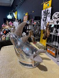 Testa di rinoceronte da appendere decorata con mosaici in vetro.