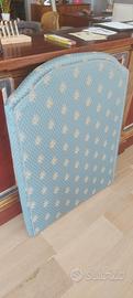 piccola testa letto singola foderata con stoffa ideale per creare un lettino singolo, piccolissimo distacco di passamaneria sul retro