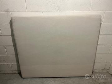 Testata di letto una piazza e mezzo usata solo per pochi mesi in ottime condizioni. Misure: 120x140cm con fodera già disinfettata e lavata pronto al riuso di 100% cottone, bellissima, color bianca con scritta grigio chiaro.