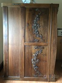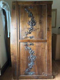 Testata e pedata letto matrimoniale in legno lavorato. Buone condizioni, ha solo un petalo scheggiato