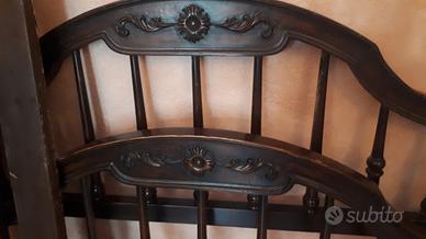 Bellissima testata letto matrimoniale in legno di noce intarsiato completa di viti e aste laterali. Trattamento antitarlo da effettuare ma credo ne valga la pena. Ritiro manuale presso la mia abitazione.No spedizione.