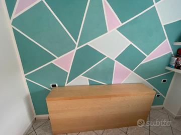 Il mobile color rovere è lungo 178cm, largo 31 è alto 78. I comodini hanno le ruote e il primo ripiano è in vetro con un il ripiano sotto estraibile. Ritiro a carico dell acquirente.