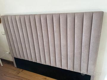 Vendo testata letto per letto 160x200cm, in ottime condizioni come da foto, colore tessuto beige, completo di accessori per i installazione a muro. Dimensioni 170x120x10cm