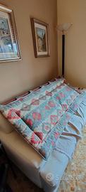 Vendesi testata letto in tessuto imbottita e con disegno etnico completa di supporti ( bastone e viti) misure 80x170