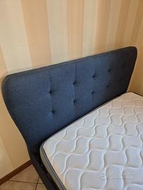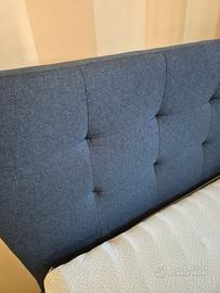 Vendo testata letto francese in ottime condizioni, In tessuto imbottito di colore blu, piedini in legno. Misura 140x190cm. Solo testata e bordi ...no materasso e no rete.