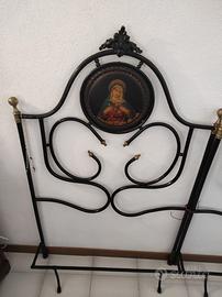 🔹 2 eleganti e rare testate per letto in ferro battuto nero, decorate con inserti in ottone e due medaglioni sacri dipinti a mano raffiguranti il Sacro Cuore di Gesù e il Cuore Immacolato di Maria. 🔹 Vendibili singolarmente per letto singolo, oppure a coppie per letto matrimoniale. 🔹 Dimensioni: Altezza da terra cm 140 Larghezza 88 cm (singolo) oppure 176 cm (matrimoniale) 🔹 Caratteristiche principali: - Struttura robusta in ferro pieno battuto a mano - Decorazioni floreali e a volute, tipiche dello stile Liberty o fine ‘800 - Pomelli in ottone originali - Due dipinti ovali su supporto metallico incastonati nella struttura 💰 Prezzo: 120€ Consegna nella provincia dell'Aquila.