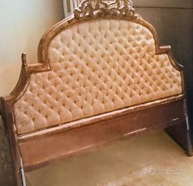 Spalliera letto matrimoniale in legno con imbottitura in tessuto beige