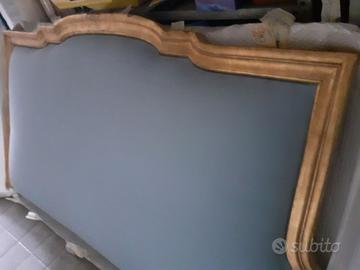 TESTIERA MATRIMONIALE Testiera letto matrimoniale in legno, antica, restaurata, imbottita, preparata per foderare, dimensioni lunghezza base cm.190, parte alta cm 173, altezza massima cm 106, da casa d'arte fiorentina