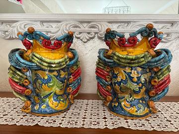 🏺 Teste di Moro Artigianali – Caltagirone – Coppia 50 cm Vendo splendida coppia di Teste di Moro originali di Caltagirone, realizzate artigianalmente in ceramica. ✔️ Altezza: circa 50 cm ✔️ Condizioni: perfette, pari al nuovo ✔️ Produzione: artigianale siciliana ✔️ Decorazioni curate nei minimi dettagli, colori vivaci e finiture di alta qualità Ideali come elemento d’arredo elegante per casa, giardino o attività (ristoranti, B&B, ecc.). 💰 Prezzo: 900€ la coppia 📍 Possibilità di ritiro a mano oppure spedizione (da concordare). Solo interessati, no perditempo.