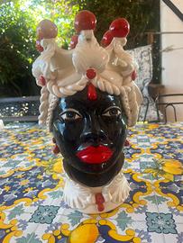 Splendida coppia di teste di moro di Caltagirone.