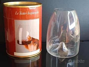 L'autentico Tester Impitoyable. Bicchiere da degustazione totalmente realizzato a mano e soffiato a bocca in puro cristallo. il nome in francese si traduce in italiano "prova spietata" proprio perché le caratteristiche del bicchiere sono studiato in modo da fare risaltare perfettamente tutte le preziosità organolettiche del vino o del liquore che si intende degustare. in confezione caratteristica e originale. il bicchiere porta il caratteristico timbro della casa datato 1984.