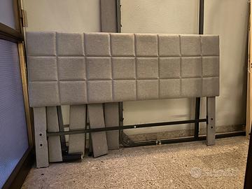 Testiera e fianchi letto matrimoniale imbottito in tessuto grigio