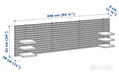 testiera di ikea modello mandal mai montata, manca solo lo scatolo esterno del pezzo più grande - scaffali, istruzioni e chiodi ancora chiusi cm.240x60