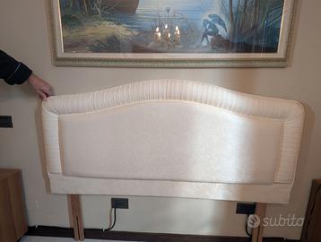 Testiera inglese per letto matrimoniale in tessuto crema . Molto elegante senza macchia e in ottimo stato. Cambio letto. Potete fare un offerta e chiedere le misure. Non spedisco!
