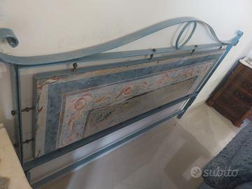 Vendo testiera per letto matrimoniale in ferro battuto con pannello centrale in marmo decorato. In ottime condizioni