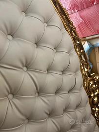 Vendo testiera letto , larga 2 metri Silvano grifoni , capitone’ pelle bianco con cornice in vero legno foglia oro zecchino. Comprato da Scillufo €4000