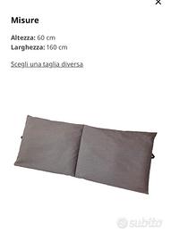Testiera imbottita Ikea grigia. Applicabile sulla maggior parte delle testiere letto. L’imbottitura è rimovibile per lavaggio tessuto. A lato ha due regolazioni per aggancio. Misure: 60x160