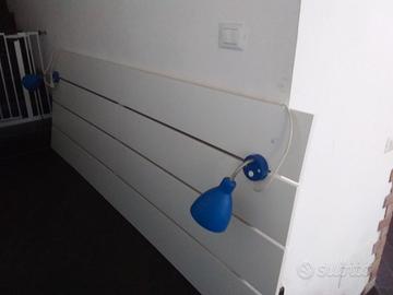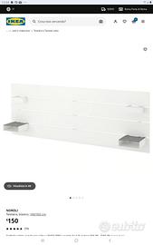 testata letto matrimoniale ikea Nordli di legno bianca con mensole di serie ikea e applique aggiunte (che possono essere tolte). misure in foto. praticamente nuova. ritiro fregene