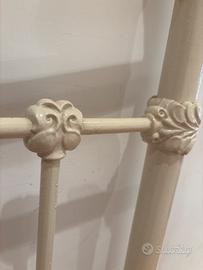 Vendo elegante testiera per letto matrimoniale in ferro battuto pieno color avorio con dettagli in ottone lucido.