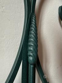Vendo bellissima testiera in ferro battuto verniciata verde scuro, dal design elegante e artigianale. Le decorazioni a riccioli e spighe rendono il pezzo unico e perfetto per camere da letto in stile classico o country chic. 🛏 Dimensioni: •Larghezza: 170 cm •Altezza: circa 95 cm (si può appendere anche piu in alto sono presenti appositi fori sul retro) (adatta per letto matrimoniale standard) ⚒ Materiale: Ferro pieno, molto robusto e resistente 🎨 Finitura: Verniciatura a polvere verde scuro satinato (in ottime condizioni) 💡 Condizioni: Ottime, nessuna ruggine né difetti strutturali. 📍 Ritiro a mano in zona Le Cure - Firenze 💰 Prezzo: 130 trattabili Ideale per chi cerca un pezzo solido, decorativo e di qualità .