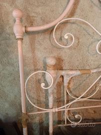Testiera letto in ferro battuto completa di agganci di collegamento alla pediera.