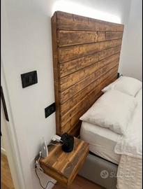 Testiera letto in legno massello con comodini fatta a mano con luce led integrata Misure L 254cm (inclusi comodini) H 150cm P 6cm Comodini 35x30x12 Solo ritiro sul posto e solo contanti