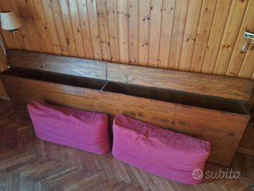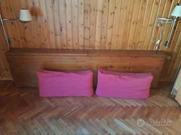 Come da titolo vendo testiera da letto in legno massello + 2 cuscini rossi grandi,
