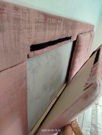 vendo testiera imbottita per letto matrimoniale realizzata su misura. Stoffa in vellutino rosa di alta qualità. I cuscini si distaccano facilmente a strappo. Acquistata 10 mesi x cui è praticamente NUOVA!