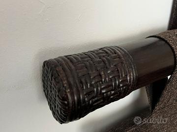 Ciscini grandi con supporto in bambù per letto matrimoniale o due singoli adattabile colore marrone scuro con cuscini in cotone marrone mélange dimensioni del bambù 80cm lunghezza 8cm diametro