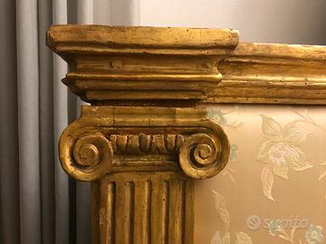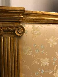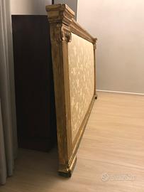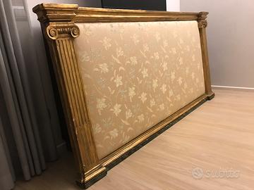 Vendo testiera per letto matrimoniale ricavata da paliotto altare in seta ricamata e doratura a foglia sulle parti lignee.