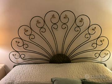 Vendo testiera letto matrimoniale in ferro battuto col verde e sfumature dorate come nuova