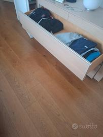 Regalo SOLO A CHI VIENE A RITIRARE DOMENICA 3 MAGGIO DI PERSONA NON SEGUO CODE. Per cambio camera. Testiera giro letto SENZA RETE con alcune sbeccature sui bordi, comò molto capiente e grande 2 cassettoni da riparare (rotte le guide dei cassetti) e cassetto piccolo in alto, e 2 comodini bassi con ampio cassetto come da foto.