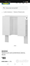 Vendo testiera letto singolo Ikea comprata 2 anni fa, per passaggio a letto a 1,5 piazze. Misure nelle foto. Ha qualche segno di utilizzo ma per il resto è ancora ottima