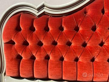 Testiera letto in legno vintage con tessuto rosso, un pezzo unico che unisce eleganza e fascino retrò. Realizzata in legno di alta qualità, questa testiera presenta un design raffinato e curato nei minimi dettagli, perfetta per dare un tocco di classe alla tua camera da letto. Il tessuto rosso intenso aggiunge un contrasto vibrante e sofisticato, che si sposa perfettamente con l’armonia del legno. Ideale per chi cerca un complemento d’arredo che non passi inosservato, questa testiera è perfetta per ambienti in stile vintage o per chi desidera aggiungere un accento di colore alla propria stanza. Resistente e durevole nel tempo.