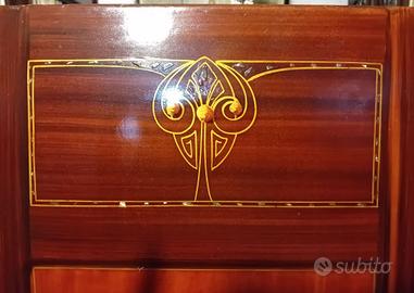 Sono 4 testiere letto in lamierino colorato rossiccio e decorato ,si può formare un letto matrimoniale oppure due singoli.