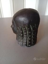 Testina di donna in ceramica bucchero nn firmata (stile Jo ponti), altezza circa 9 cm, con riflessi verde rame tra i capelli, una sottile frattura ben ricomposta e poco visibile.