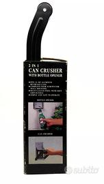 SCHIACCIA LATTINE E APRI BOTTIGLIE DA MURO Mai aperto, come in foto. Scatola con segni come in foto.