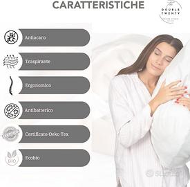 Cuscino in memory foam: grazie alla schiuma viscoelastica ad alta densità, il cuscino si adatta perfettamente ai contorni di capo e collo, favorendo un allineamento neutro della colonna vertebrale, riducendo il reflusso.