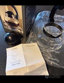 Realizzato in vetro resistente al calore con coperchio e manico in plastica nera.