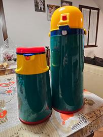 Set thermos scalda vivande. Quello più grande ha una capacità di 1,75 lt, ha il bottone "push" con irroratore e blocca spruzzo. Quello più piccolo ha una capacità di 1 lt, con tappo. Utilissimi durante lo sport, campeggio, gite.
